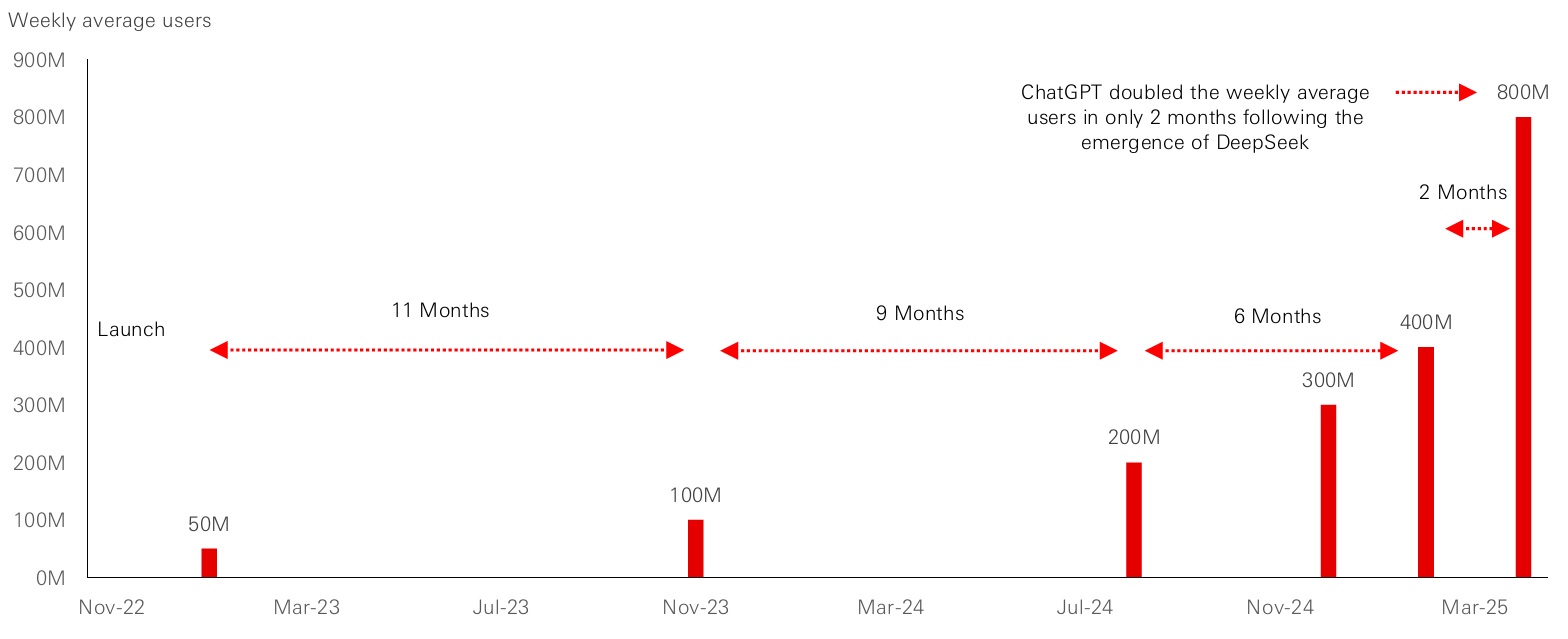 Figure 1: ChatGPT’s growth has continued to accelerate post-DeepSeek