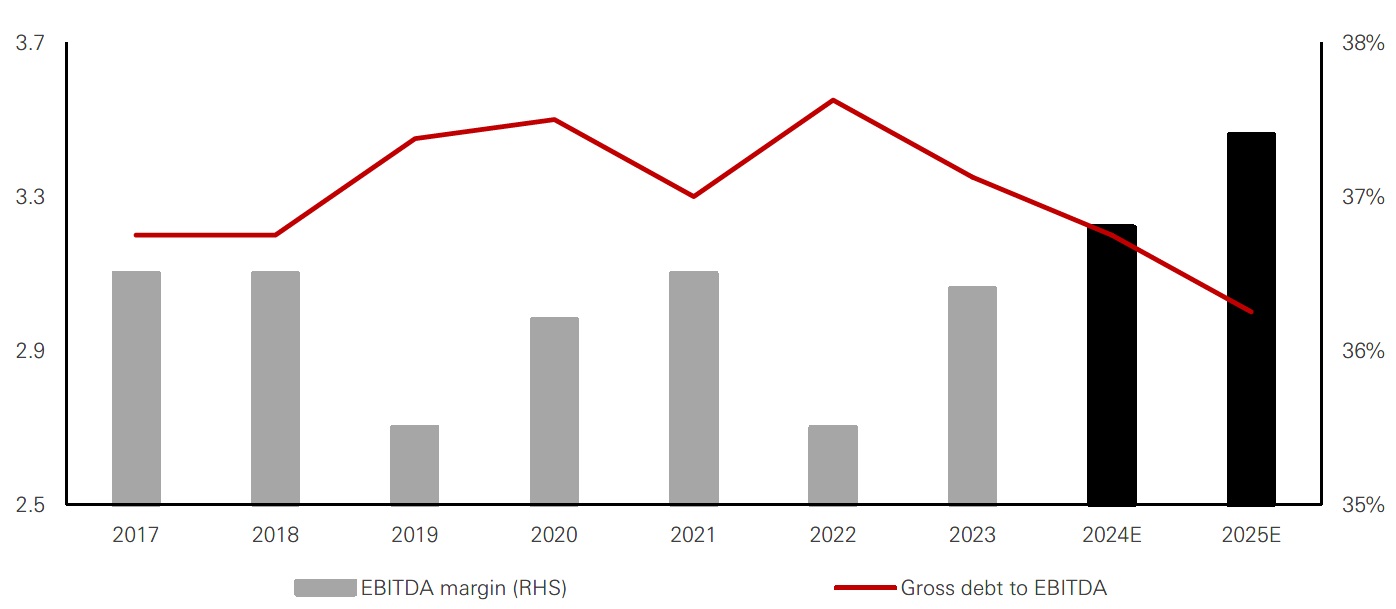 Figure 3: Gross leverage – Stabilizing around long-term historical averages