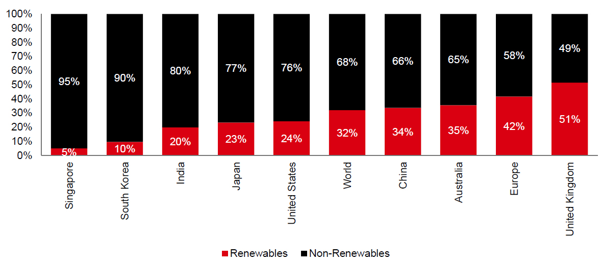 - Solar and wind generation across Asia: penetration of renewable energy generation capacity in Asia Pacific, including developed markets, is materially lagging more mature Western markets, meaning multiples more annual investment is needed compared to historical investment7